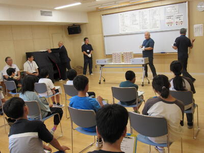 税金がなかったらどのような世の中になるのかをDVDで視聴したり、鑑賞したことを利用したクイズをしたり、一億円のレプリカを用意し、実際に子どもたちが持つ体験をしたりと興味をもつような仕掛けをたくさん用意してくださいました。